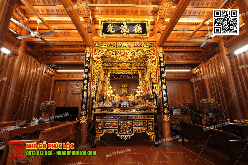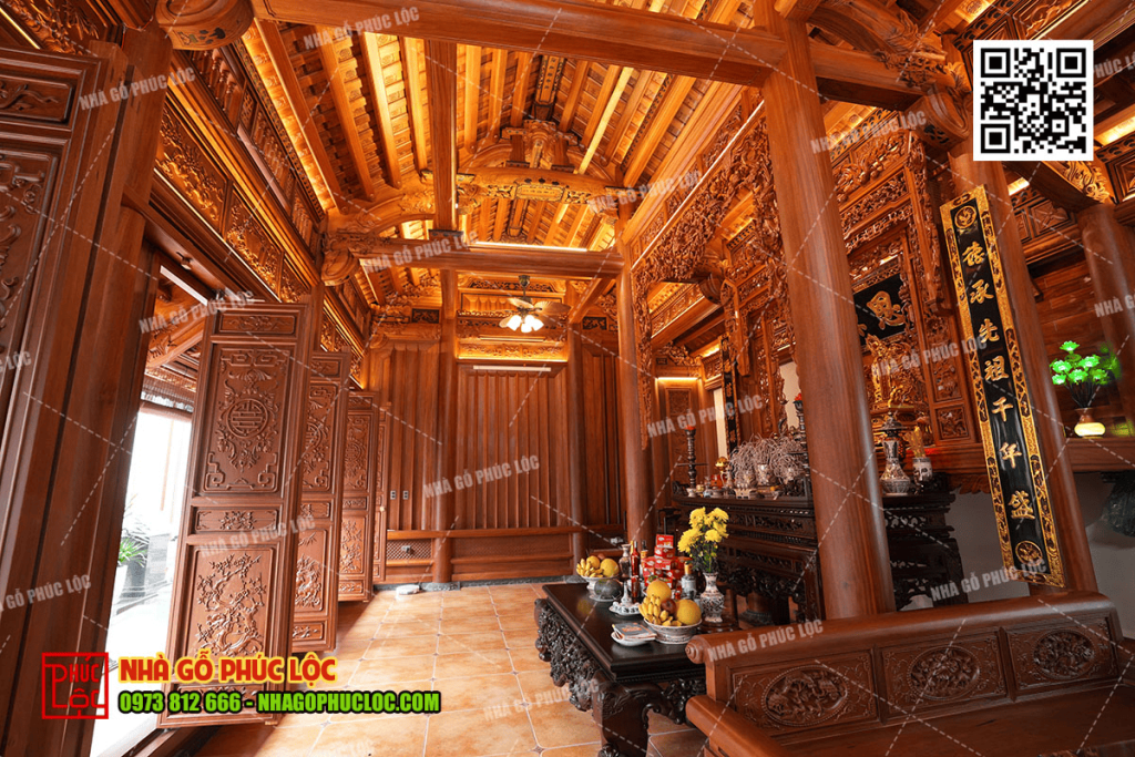 Mẫu nhà gỗ 5 gian 32 cột thông gian vách lụa