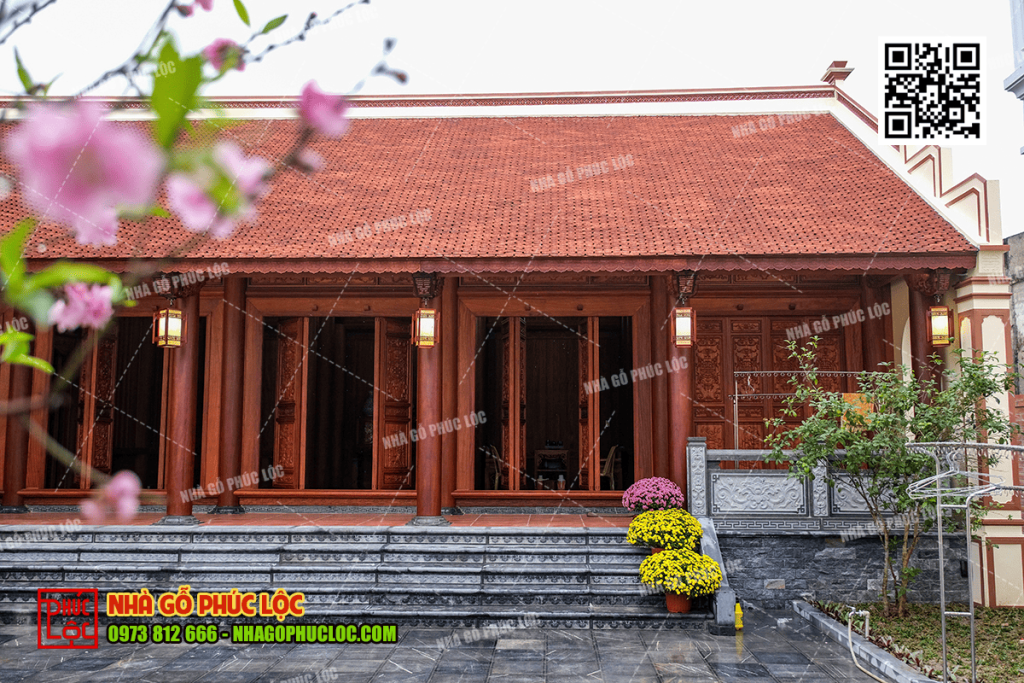 Mẫu nhà gỗ 5 gian 22 cột thông hiên