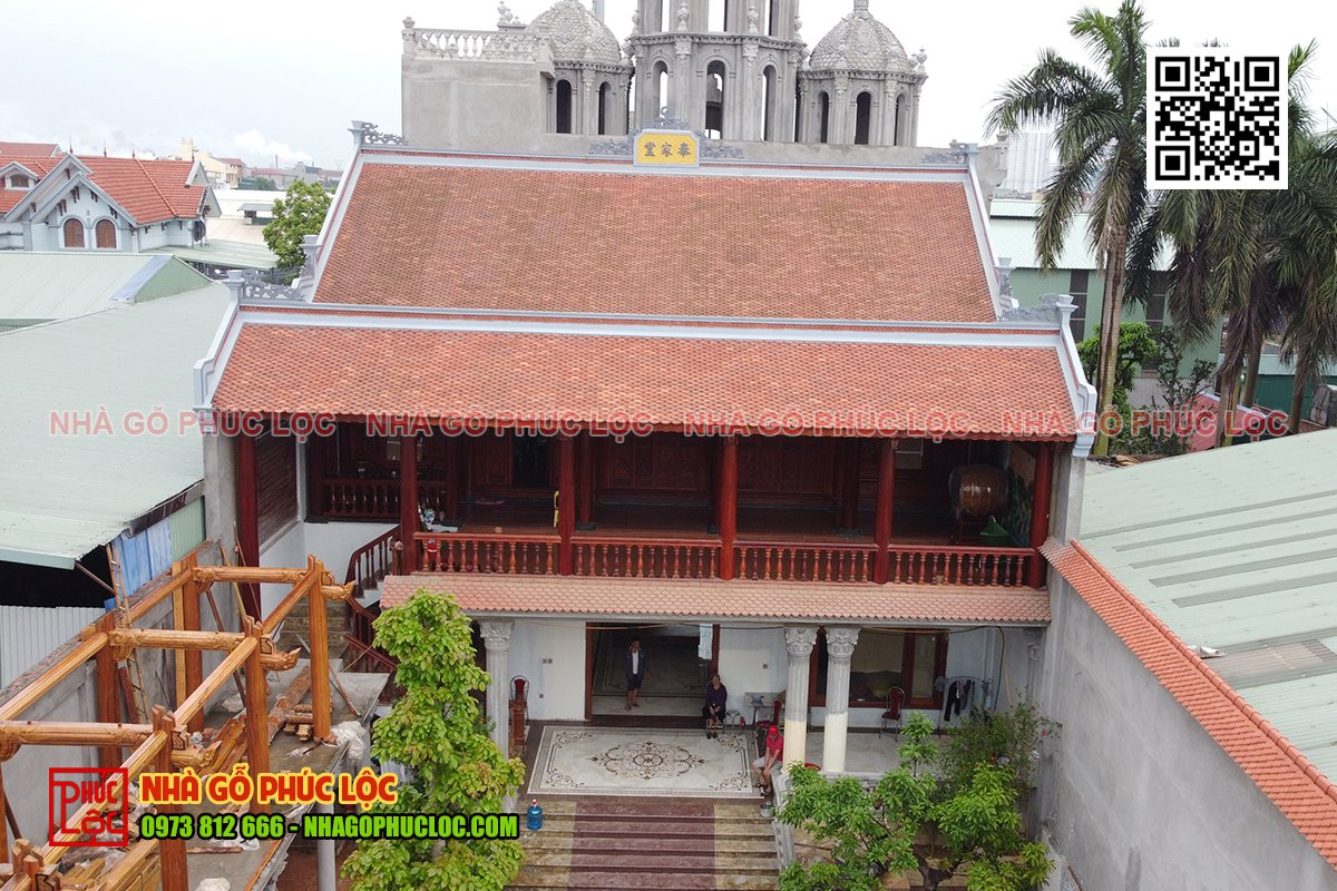 Tổng thể mẫu nhà thờ gỗ kết hợp nhà ở