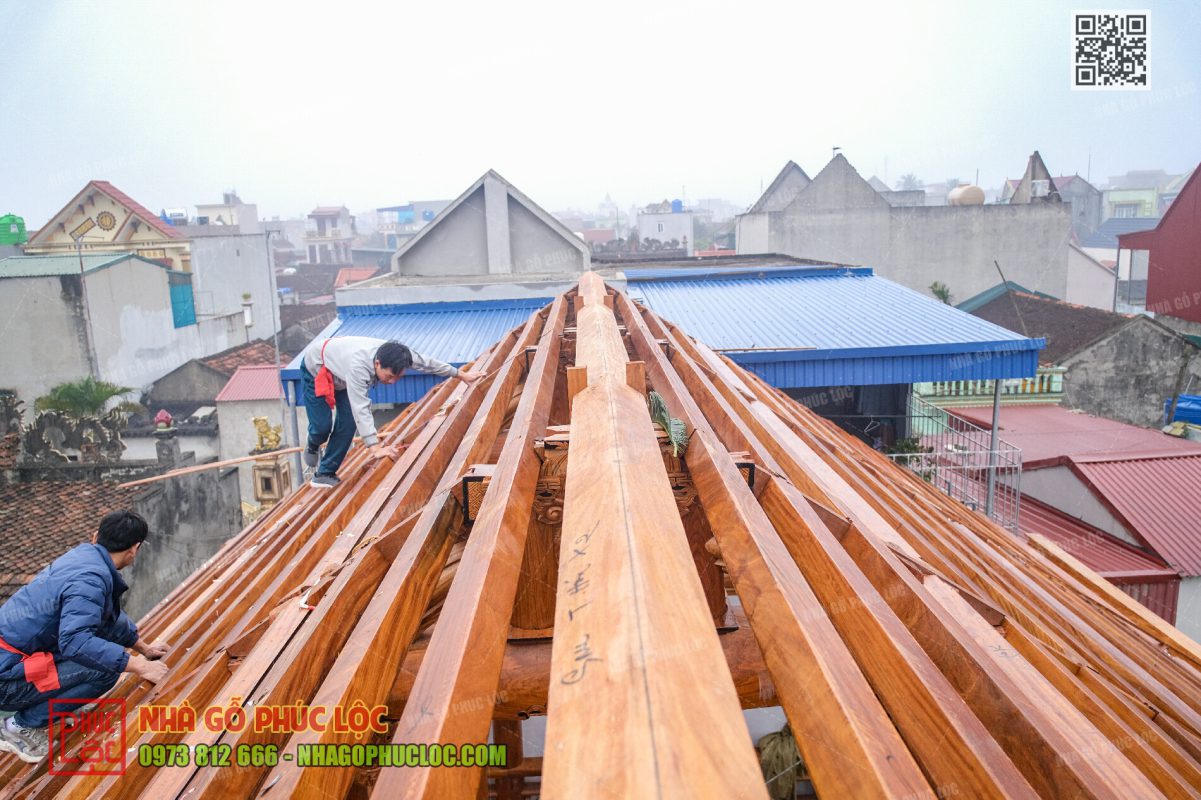 Làm nhà gỗ 5 gian phụ thuộc theo điều kiện thi công