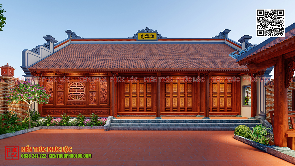 - Nhà 5 gian có kết cấu phức tạp hơn nên thời gian thiết kế thường lâu hơn nhà 3 gian. Dưới đây là hình ảnh một số mẫu thiết kế nhà thờ họ 5 gian đẹp được kiến trúc sư bên nhà gỗ Phúc Lộc thực hiện.