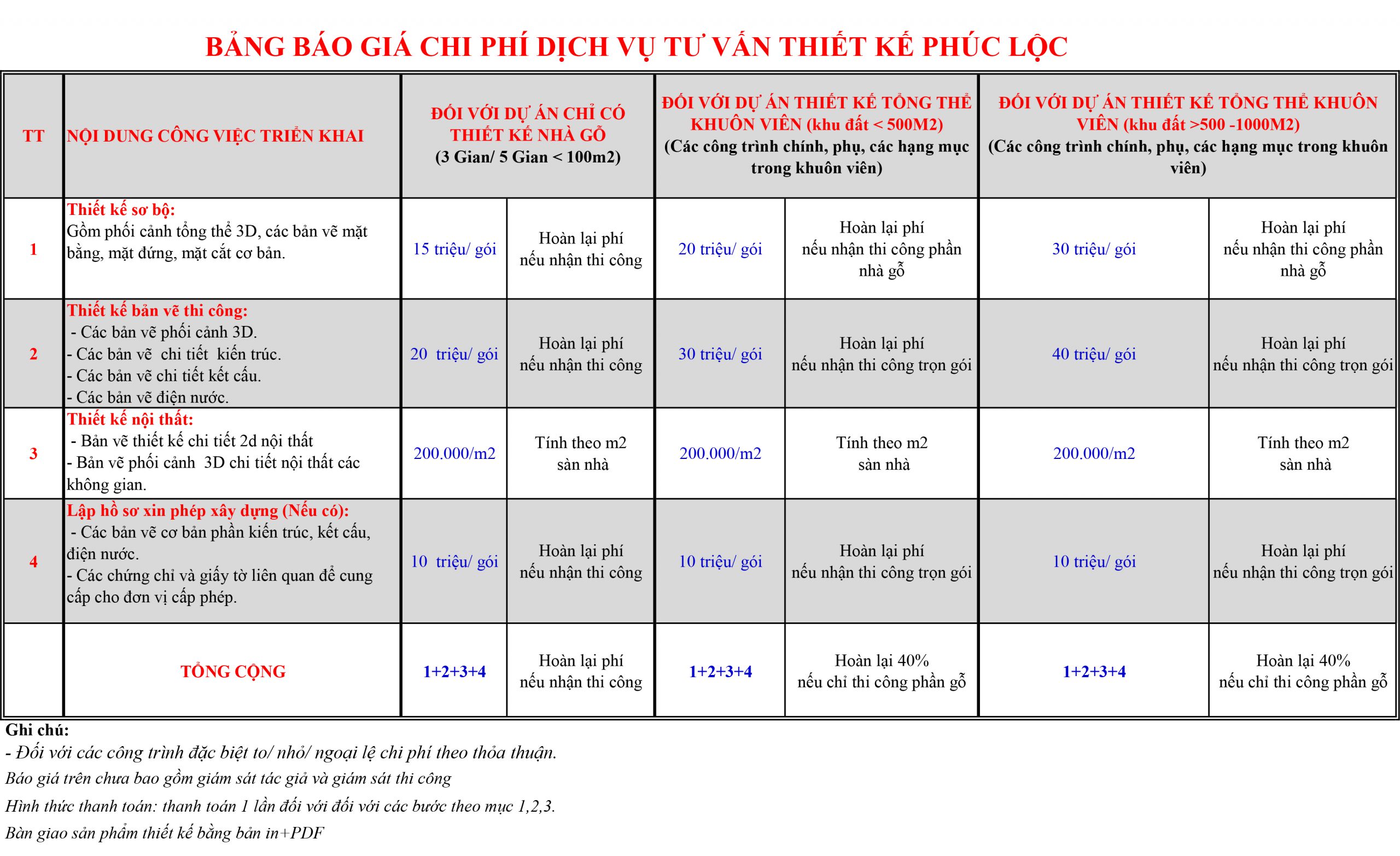 GiáGía thiết kế nhà thờ họ chi tiết phụ thuộc vào những yếu tố được kể trên nhưng đồng thời cũng dựa vào dịch vụ của từng đơn vị thiết kế. Dưới đây là bảng giá thiết kế nhà từ đường mới nhất của Kiến Trúc Phúc Lộc, xin mời quý vị cùng tham khảo.