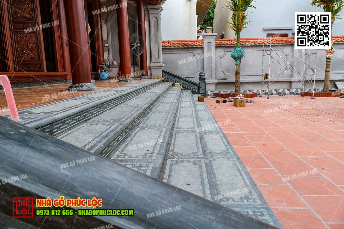 Trong thực tế, bậc tam cấp nhà gỗ kẻ truyền thường gặp các phương án như đá tự nhiên , gạch nung Bát Tràng hoặc ốp đá granite.